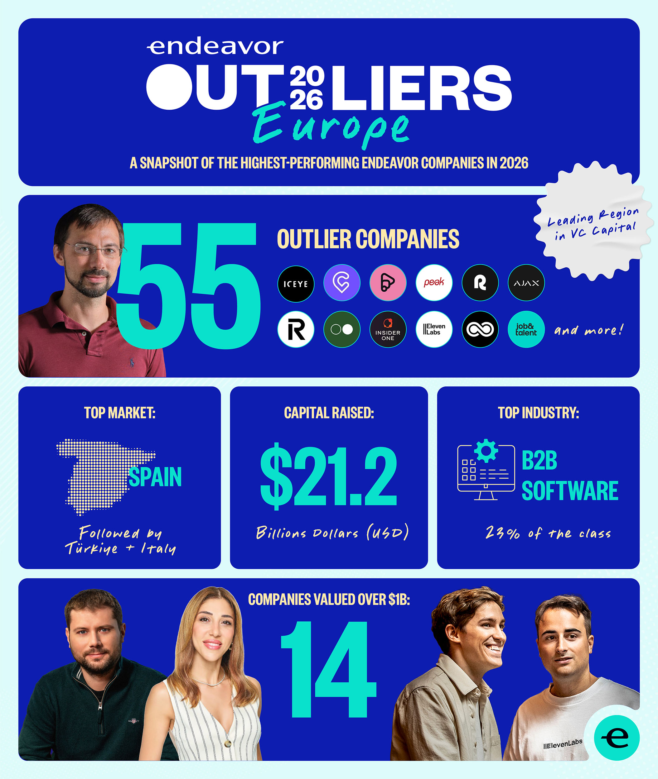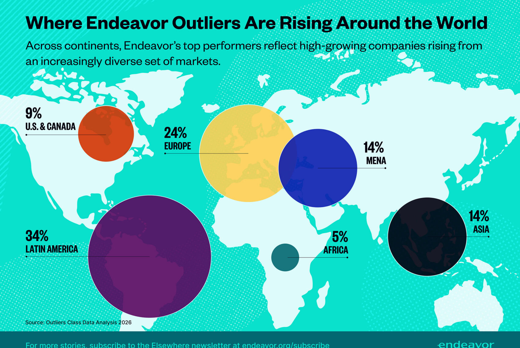 Cada año, Endeavor publica la lista “Endeavor Outliers” : el top 10% de su red global de emprendedores de alto impacto – presente en 45 países – al frente de empresas de rápido crecimiento que están transformando sus industrias y mercados. Compañías que no sólo crecen, sino que escalan de forma exponencial mientras generan empleo de calidad y transforman ecosistemas enteros.